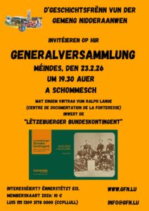 Wenn Sie das Engagement der „Geschichtsfrënn“ zum Aufbau und Erhalt des kollektiven Gedächtnisses unserer Gemeinde unterstützen möchten, werden Sie Mitglied und überweisen Sie Ihren Jahresbeitrag (10 Euro p.P.) auf das Konto